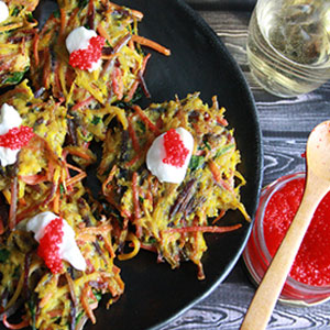 Beet and Heirloom Carrot Rosti with Creme Fraiche and Caviar